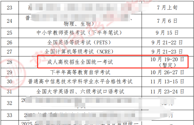 2024年安徽成人高考时间预计为:10月19、20日