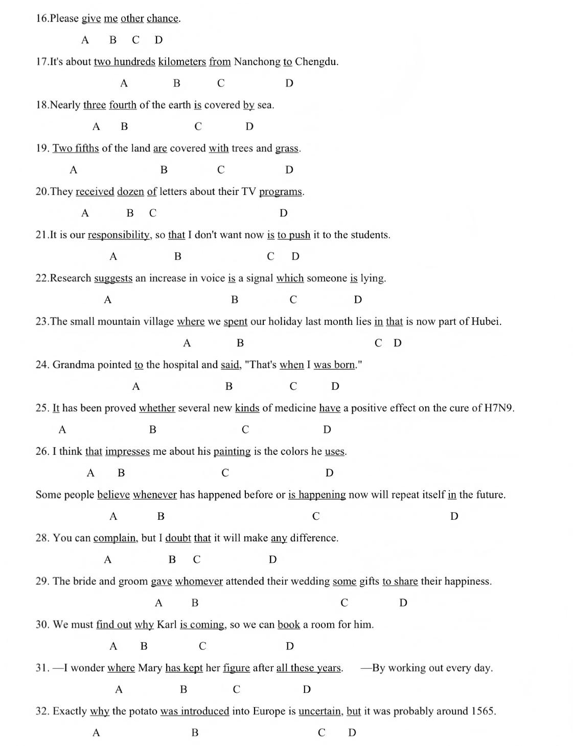 2025年专升本英语改错专项刷题训练
