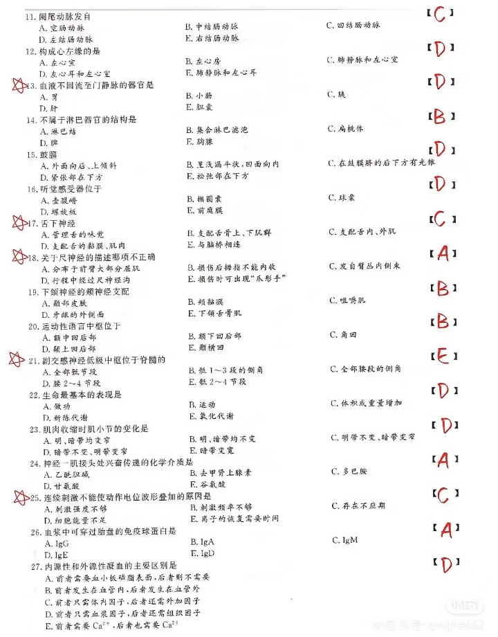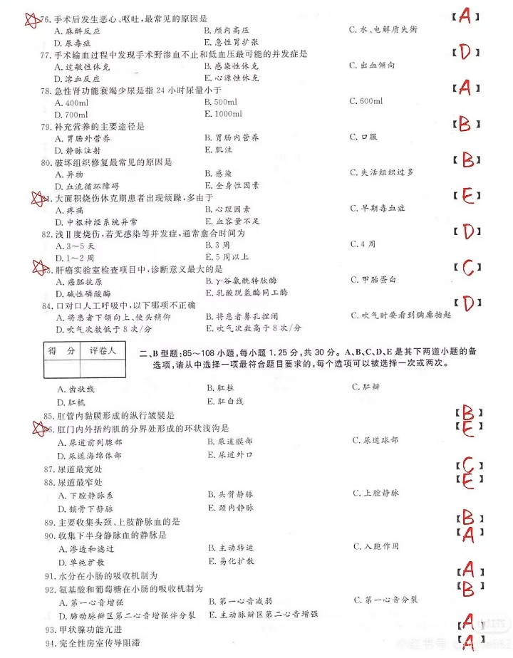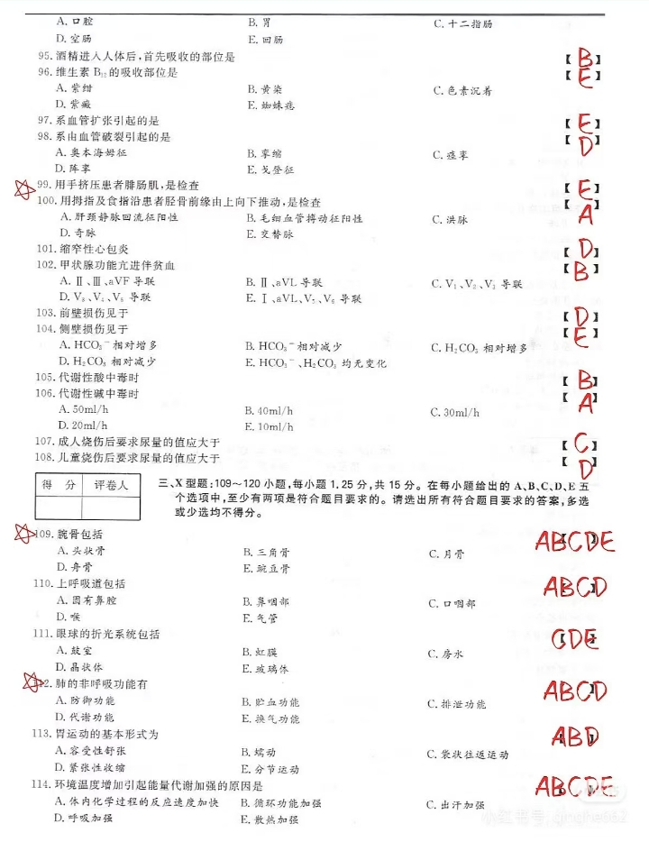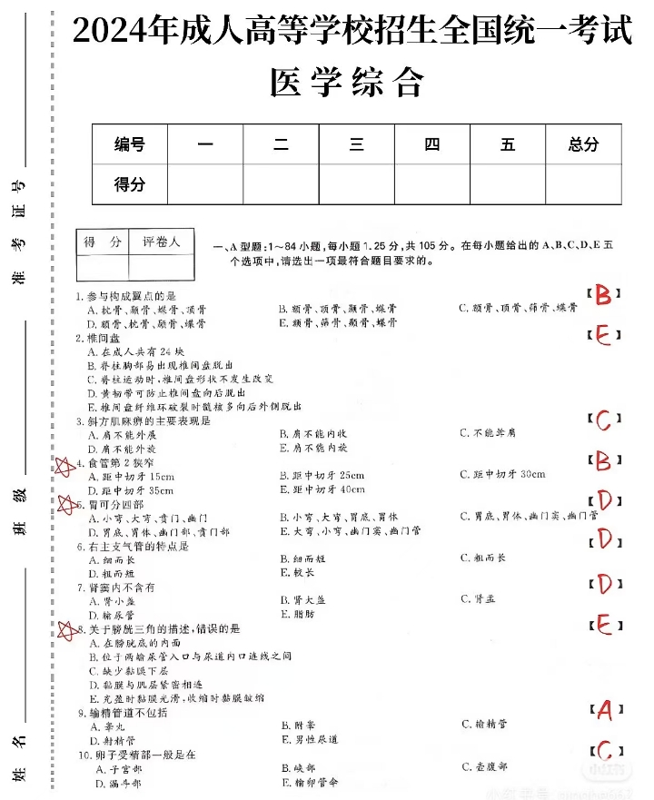 2024年成人高考专升本医学综合考试真题及答案
