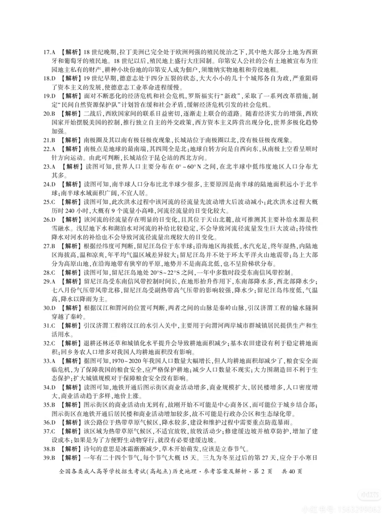 2023年成人高考高起点《历史地理综合》真题及答案 |