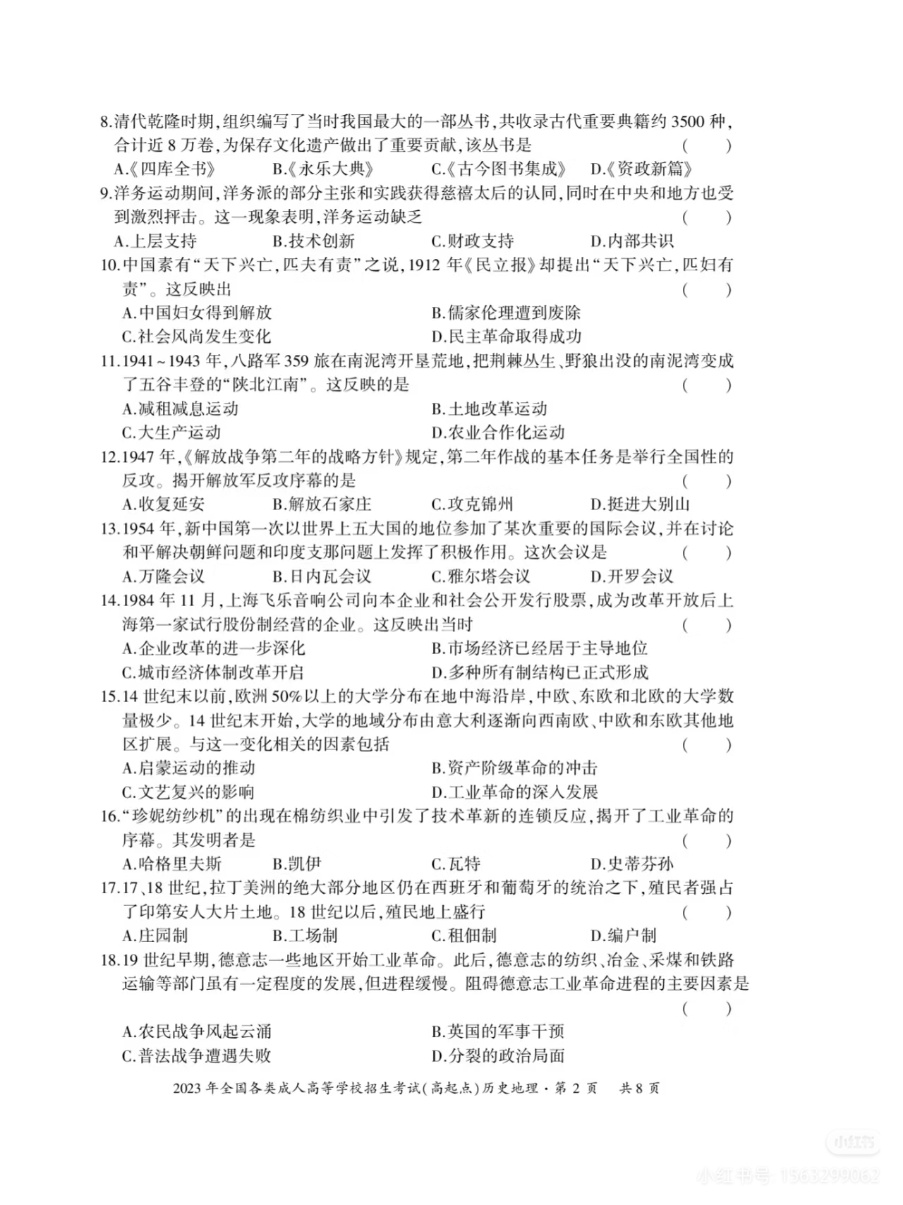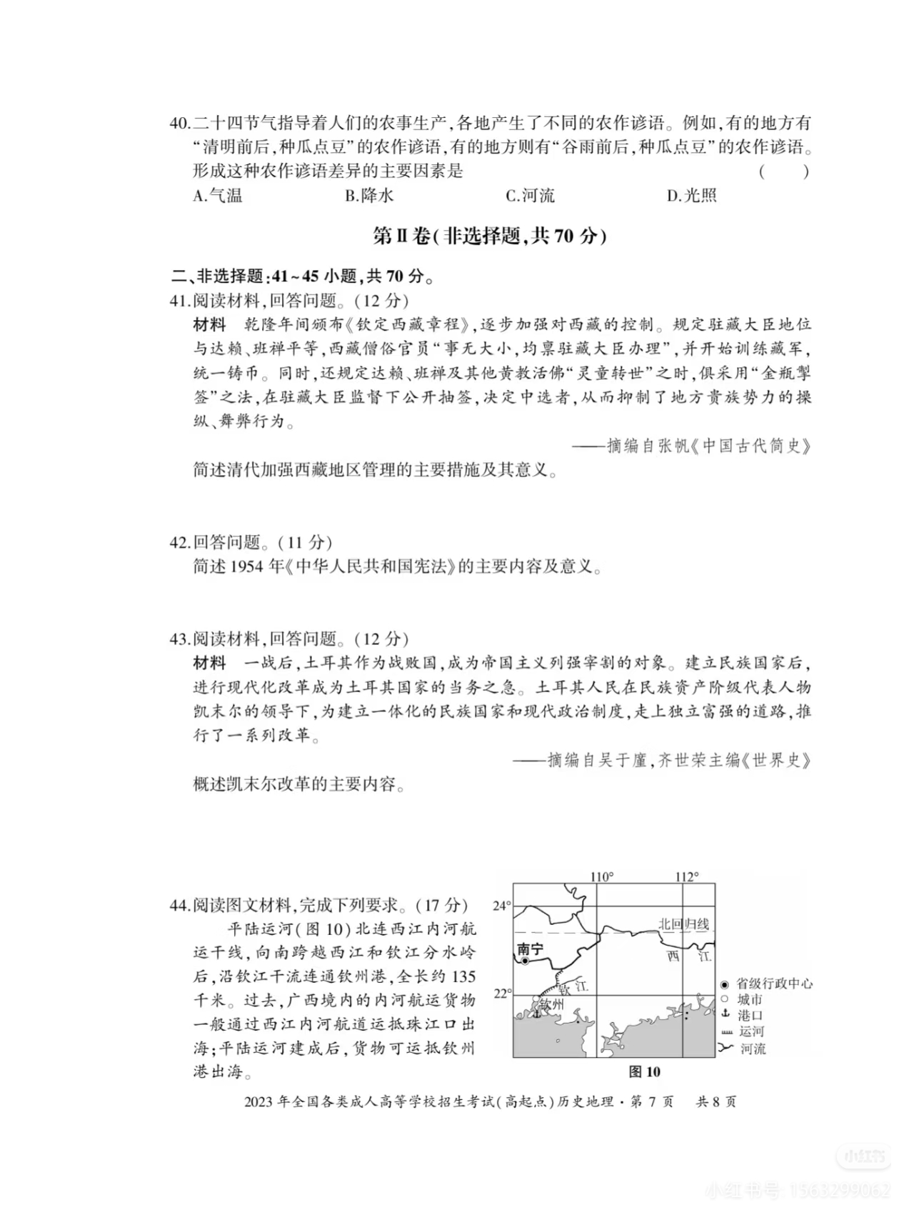 | 【导语】2023年成人高考高起点《历史地理综合》真题及答案 | ||