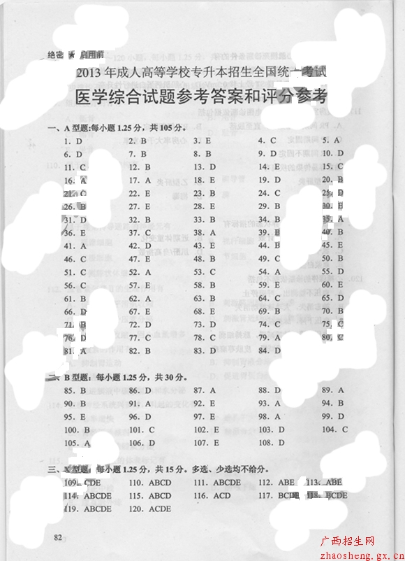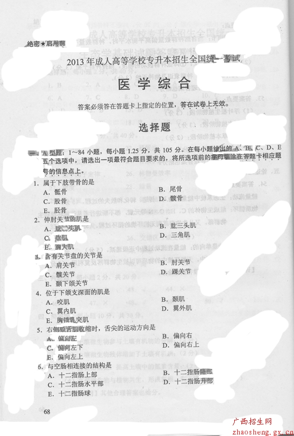 | 【导语】2013年成人高考专升本《医学综合》真题及答案 | ||