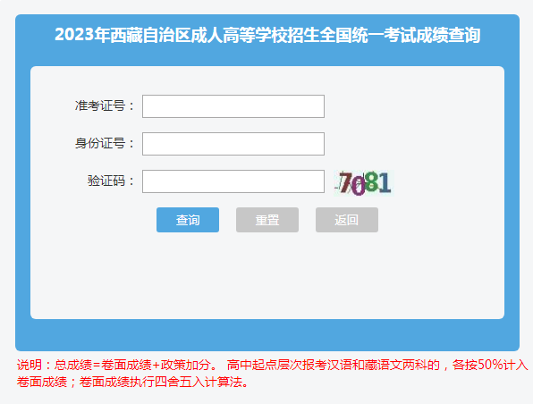2023年西藏成人高考成绩查询入口>>